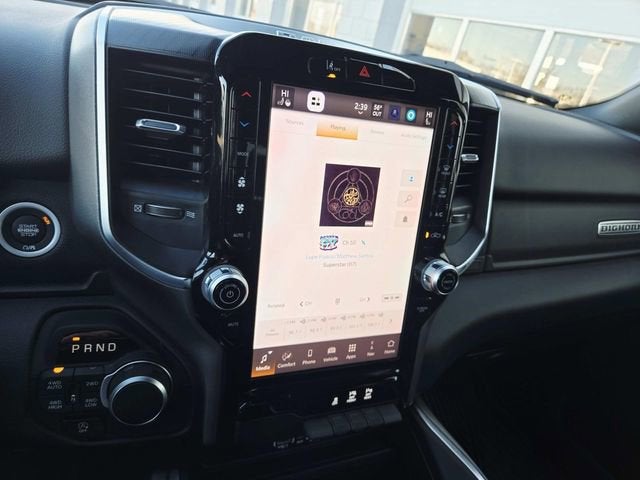 This 1500 is well Equipped with Bed Utility Group (Exterior 115V AC Outlet, MOPAR 4 Adjustable Cargo Tie-Down Hooks, MOPAR Spray In Bedliner, and Pick-Up Box Lighting), Big Horn Level 2 Equipment Group (115V Auxiliary Power Outlet, 115V Auxiliary Rear Power Outlet, 12 Touchscreen Display, 2nd Row In Floor Storage Bins, 400W Inverter, 4G LTE Wi-Fi Hot Spot, 9 Amplified Speakers w/Subwoofer, Air Conditioning ATC w/Dual Zone Control, Apple CarPlay, Auto Power-Folding Mirrors, Auto-Dimming Exterior Driver Mirror, Auto-Dimming Rear-View Mirror, Black Exterior Mirrors, Black Premium Power Mirrors, Cluster 7.0 TFT Color Display, Configurable Drive Mode, Connected Travel & Traffic Services, Connectivity - US/Canada, Convex Wide-Angle Exterior Mirror Insert, Exterior Mirrors Courtesy Lamps, Exterior Mirrors w/Heating Element, Exterior Mirrors w/Supplemental Signals, Glove Box Lamp, Google Android Auto, GPS Antenna Input, GPS Navigation, HD Radio, Heated Front Seats, Heated Steering Wheel, Integrated Voice Command w/Bluetooth®, Leather Wrapped Steering Wheel, LED Dome Lamp w/On/Off Switch, LED Footwell Lighting, Media Hub w/2 Charge Only USBs, Overhead LED Lamps, Power 2-Way Driver Lumbar Adjust, Power Adjust 8-Way Driver Seat, Power Adjustable Pedals, Premium Overhead Console, Radio: Uconnect 5 Nav w/12.0 Display, Rear Power Sliding Window, Rear Window Defroster, Remote Tailgate Release, Security Alarm, SiriusXM w/360L, Steering Wheel Mounted Audio Controls, Sun Visors w/Illuminated Vanity Mirrors, Universal Garage Door Opener, and USB Host Flip), Night Edition (3 Rear Seat Head Restraints, 4 Way Front Headrests, Accent Color Door Handles, Accent Color Premium Power Mirrors, Accent Color Tailgate Handle, Anti-Spin Differential Rear Axle, Black Exterior Truck Badging, Black Headlamp Bezels, Black Interior Accents, Black Painted Exterior Mirrors Caps, Black Tail Lamp Bezels, Body Color Front Bumper, Body Color Rear Bumper w/Step Pads, Bucket Seats, Deluxe Cloth Bucket Seats, Front Seat Back Map Pockets, Full Length Floor Console, Grille Black Surround Black Mesh, Manual Adjust 4-Way Front Passenger Seat, RAM Grille Badge - Black, Rear 60/40 Folding Seat, Rear Center Armrest, and Wheels: 20 x 9.0 Aluminum Painted Clad), Quick Order Package 23Z Big Horn (Big Horn Badge), 1500 Big Horn/Lone Star, 4D Crew Cab, 3.6L V6 24V VVT, 8-Speed Automatic, 4WD, Bright White Clearcoat, Black Cloth, 4-Wheel Disc Brakes, 6 Speakers, ABS brakes, Air Conditioning, Alloy wheels, AM/FM radio, Apple CarPlay/Android Auto, Auto High-beam Headlights, Brake assist, Bumpers: chrome, Cloth Bench Seat, Compass, Delay-off headlights, Driver door bin, Dual front impact airbags, Dual front side impact airbags, Electronic Stability Control, Front anti-roll bar, Front Center Armrest w/Storage, Front fog lights, Front License Plate Bracket, Front reading lights, Front wheel independent suspension, Fully automatic headlights, Heated door mirrors, Illuminated entry, Low tire pressure warning, Manual Folding Exterior Mirrors, MOPAR Front & Rear Rubber Floor Mats, Multi-Function Tailgate, Occupant sensing airbag, Outside temperature display, Overhead airbag, Overhead console, Panic alarm, ParkView Rear Back-Up Camera, Passenger door bin, Passenger vanity mirror, Power door mirrors, Power steering, Power windows, Radio data system, Radio: Uconnect 5 W w/8.4 Display, RAM Grille Badge - Chrome, RAM's Head Badge, Rear anti-roll bar, Rear seat center armrest, Rear step bumper, Rear Underseat Compartment Storage, Remote keyless entry, Speed control, Split folding rear seat, Supplier Part Tracking (J-1), Tachometer, Telescoping steering wheel, Tilt steering wheel, Trac